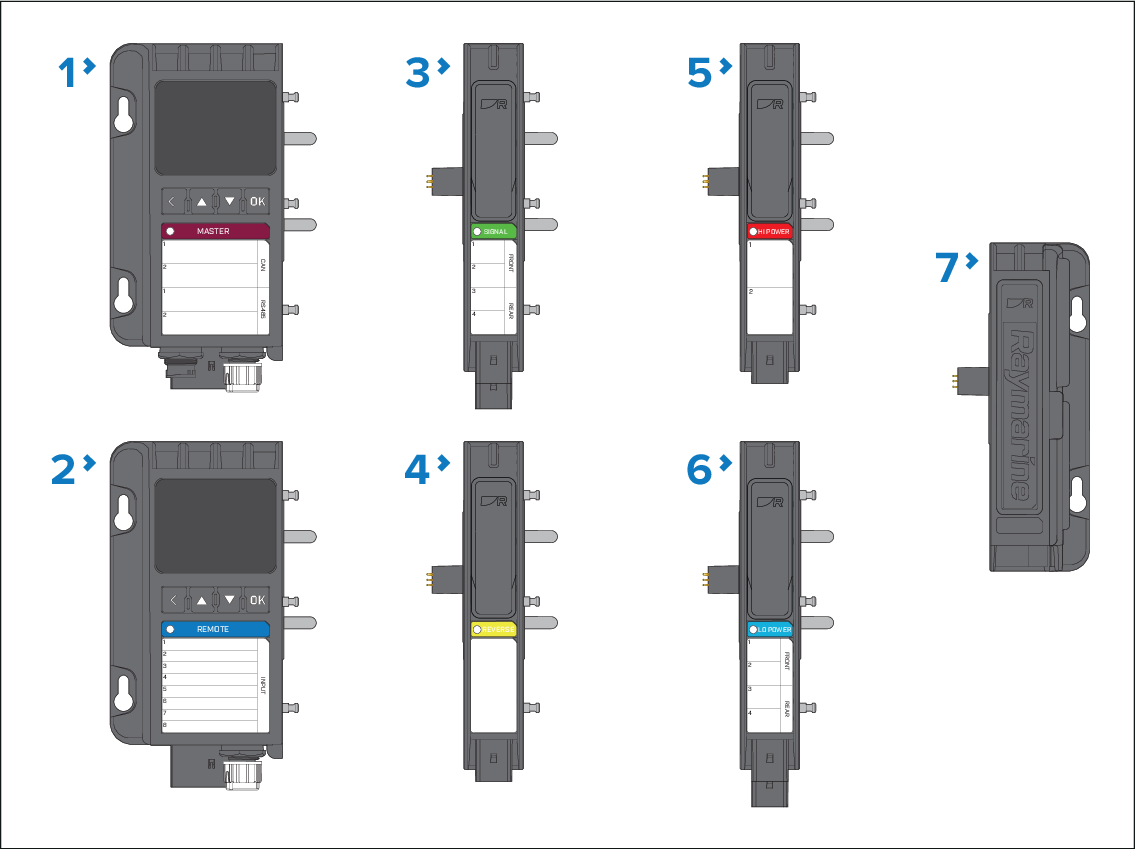 The Master module can be controlled using a networked chartplotter (MFD) or the Raymarine app.
