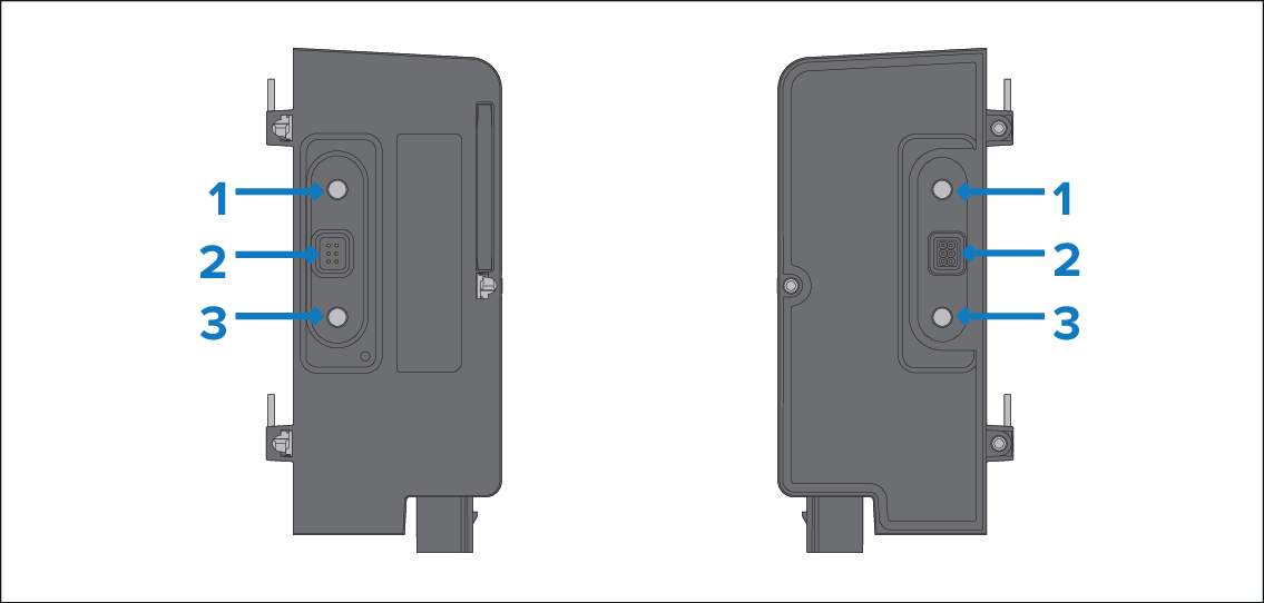 When the modules are connected together power is supplied via the bus bars and communications via the module communications connector. These connections are made when the modules are locked together.