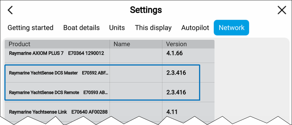 The software version of your YachtSense DCS-Series Digital Control System can be checked from a Raymarine chartplotter (MFD) or from the Master or Remote module’s user interface.
