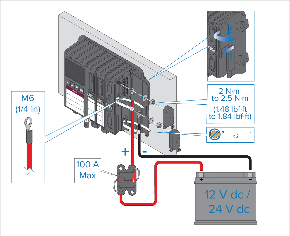 or inline fuse (100A maximum), fitted to the positive power supply cable.