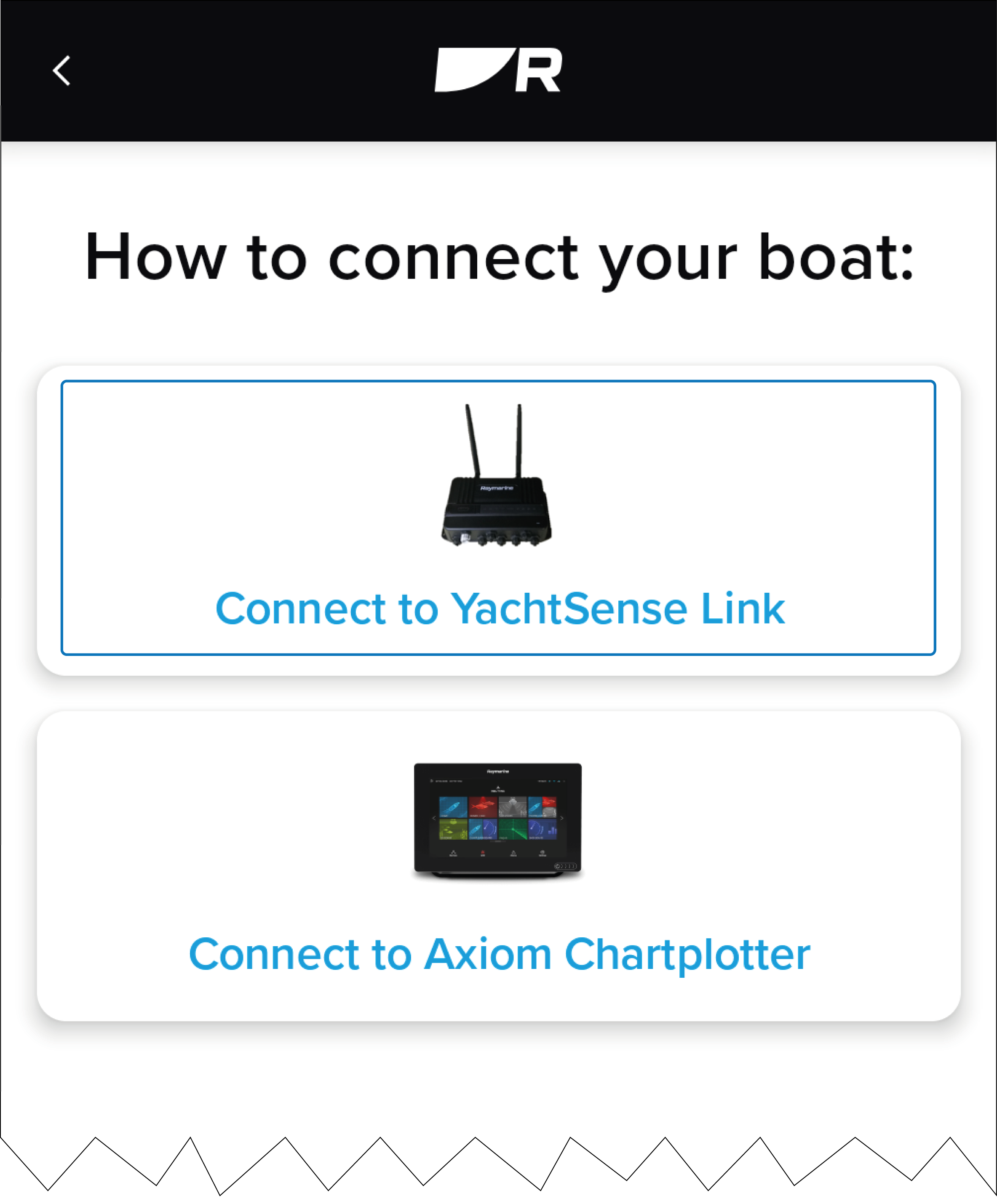 Select the Connect to YachtSense Link option in the app and follow the onscreen instructions to register and connect to your router.