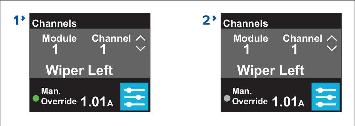 Output channels can be manually overridden, e.g.: forced on or forced off from the Master or Remote module’s display.