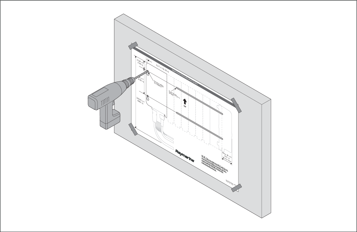 - Secure the mounting template in the required location using adhesive tape.