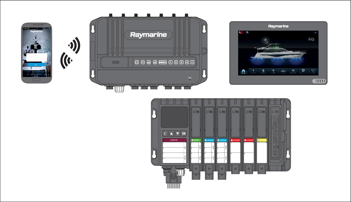 Raymarine app connected to a YachtSense Link router with a YachtSense DCS-Series Digital Control System