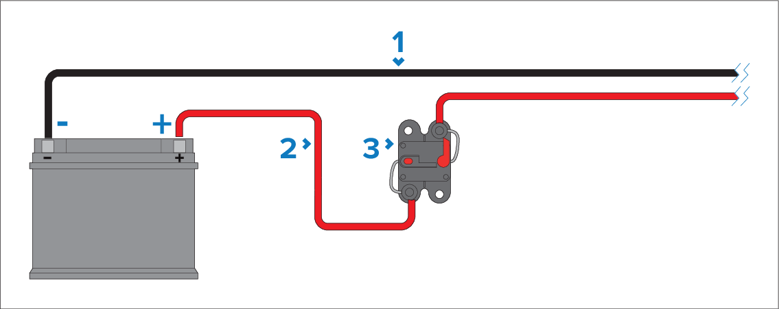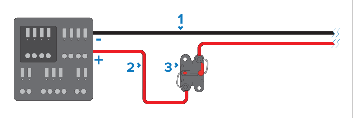 Waterproof thermal circuit breaker or inline fuse (rating determined by system current draw).
