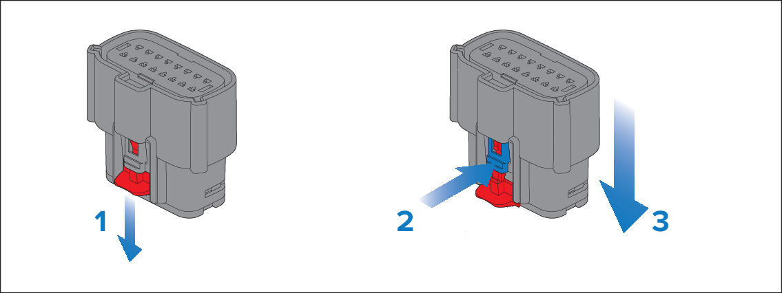 The illustration below depicts the Master module connector, however the procedure is the same for any of the Molex® connectors used with YachtSense DCS-Series (Digital Control System).
