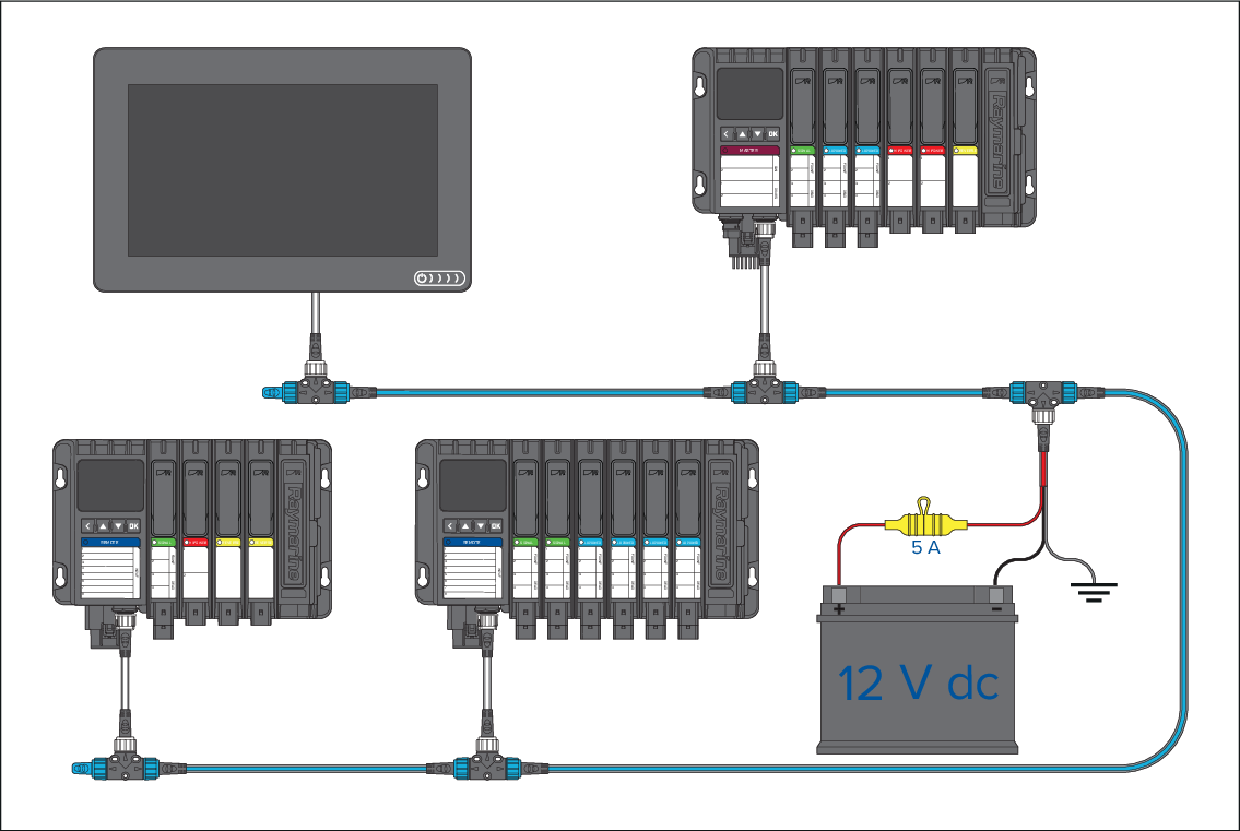 For simplicity, the example above shows a SeaTalk NG network dedicated to YachtSense DCS-Series Digital Control System, however other SeaTalk NG devices can be connected.