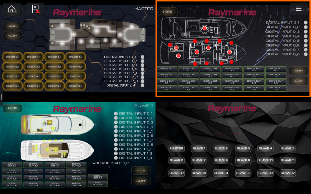 YachtSense Digital Control SystemSplitscreen app pages enable multiple YachtSense DCS-Series Digital Control System pages to be viewed at the same time on the same screen.