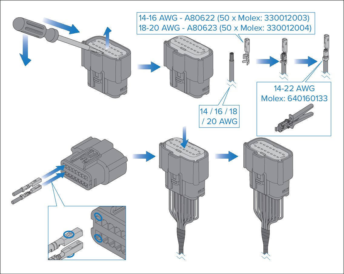 (Molex® 14–22 AWG