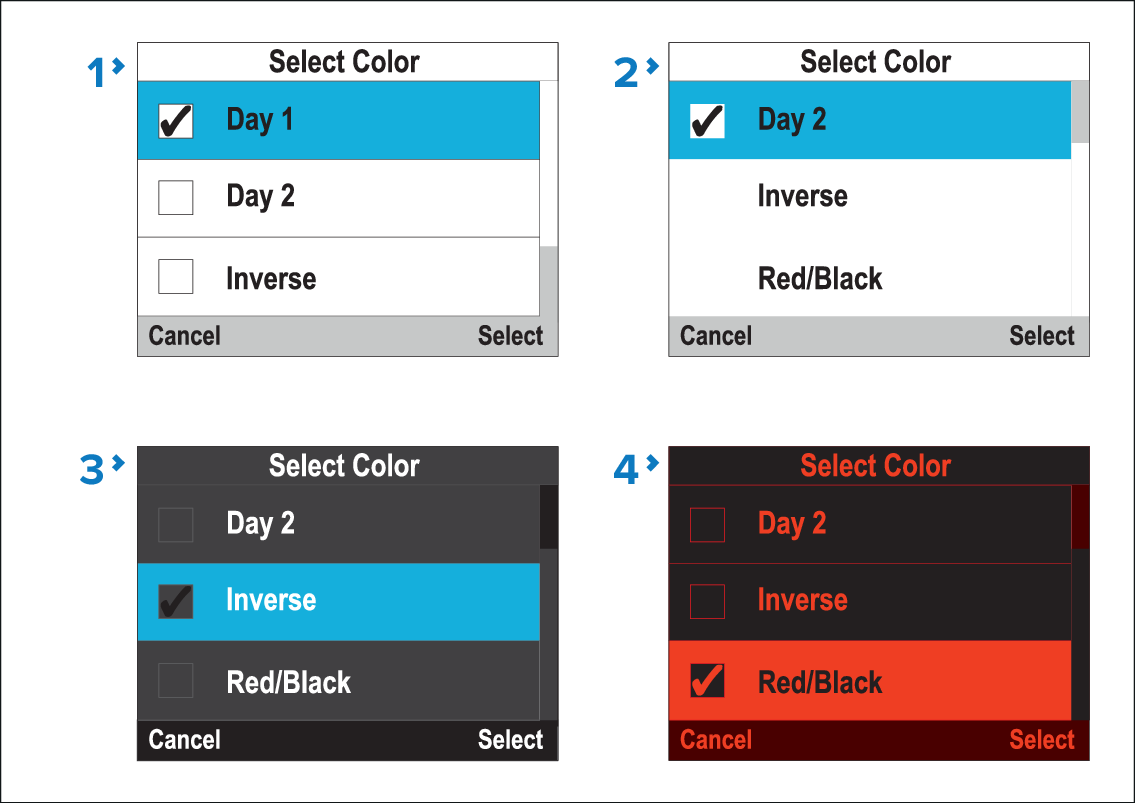 Color schemeFrom the Colors menu: Menu > Display