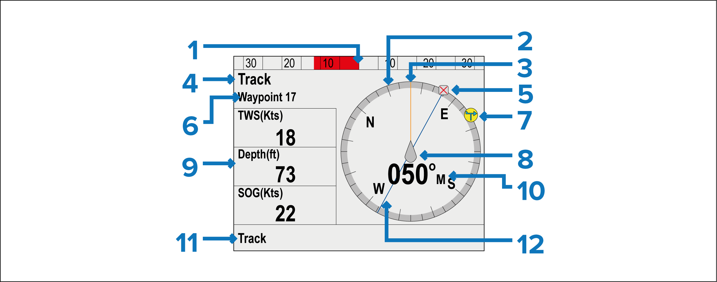 - Locked heading — Auto , Wind Vane mode and Pattern mode.