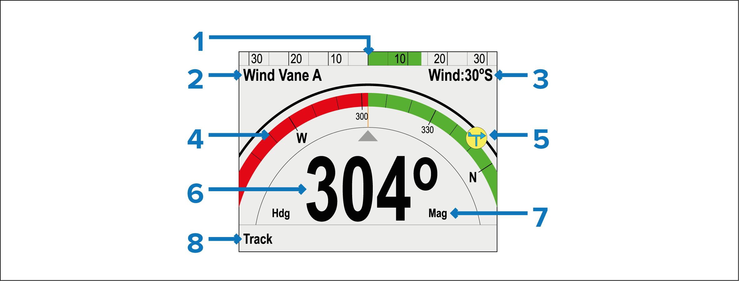 - Locked heading — Auto , Wind Vane mode and Pattern mode.