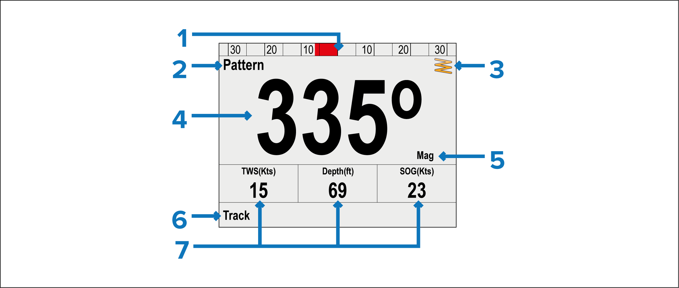 Current Heading — (In Standby and Power steer modes)