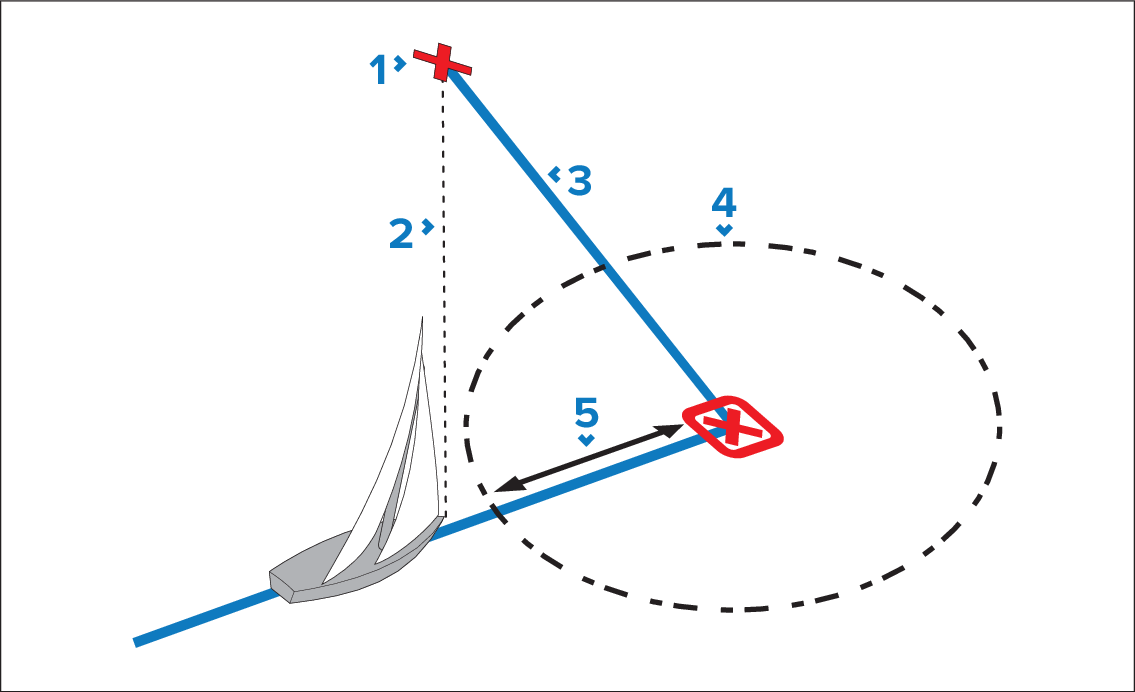actual waypoint when the alarm sounds. The size of the waypoint arrival