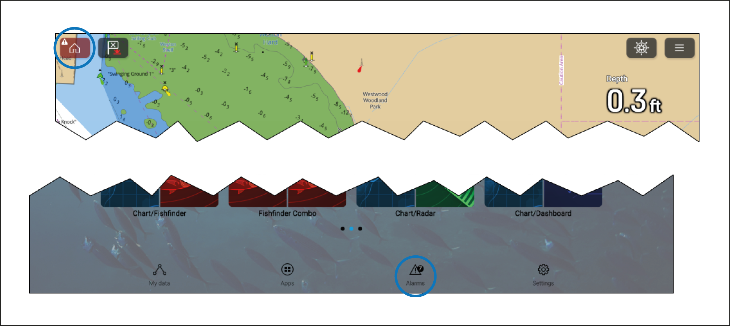 The homescreen Alarms icon will identify the number of active alarms.