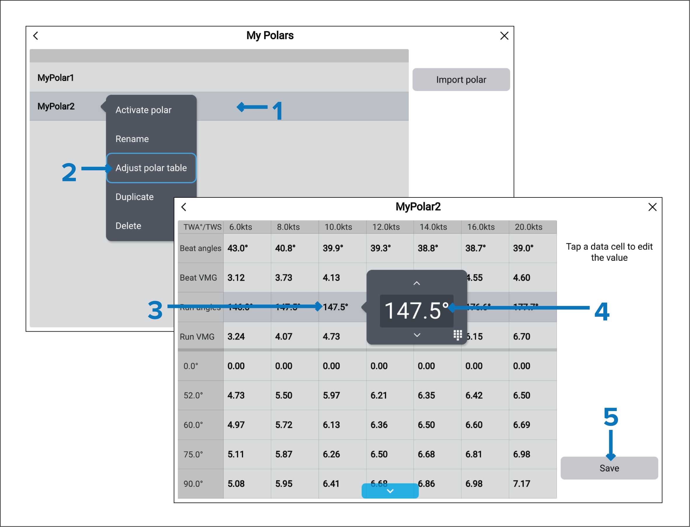- Select Adjust polar table from the pop-over menu.