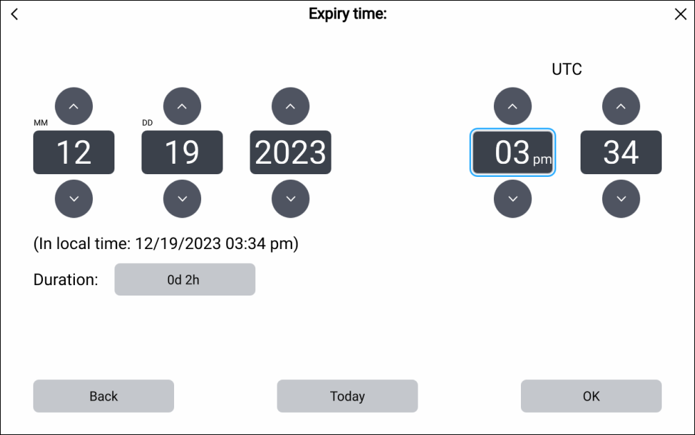 By default, the Expiry time will be 24 hours later than the current system date and time.