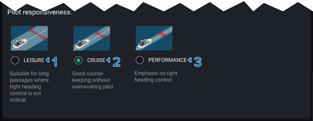 Autopilot controlPilot responsivenessThe following Pilot responsiveness options are available: