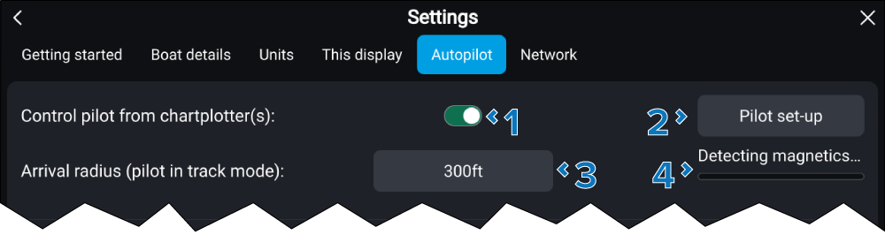 Control pilot from chartplotter(s) Enable and disable Autopilot control from chartplotters. |
