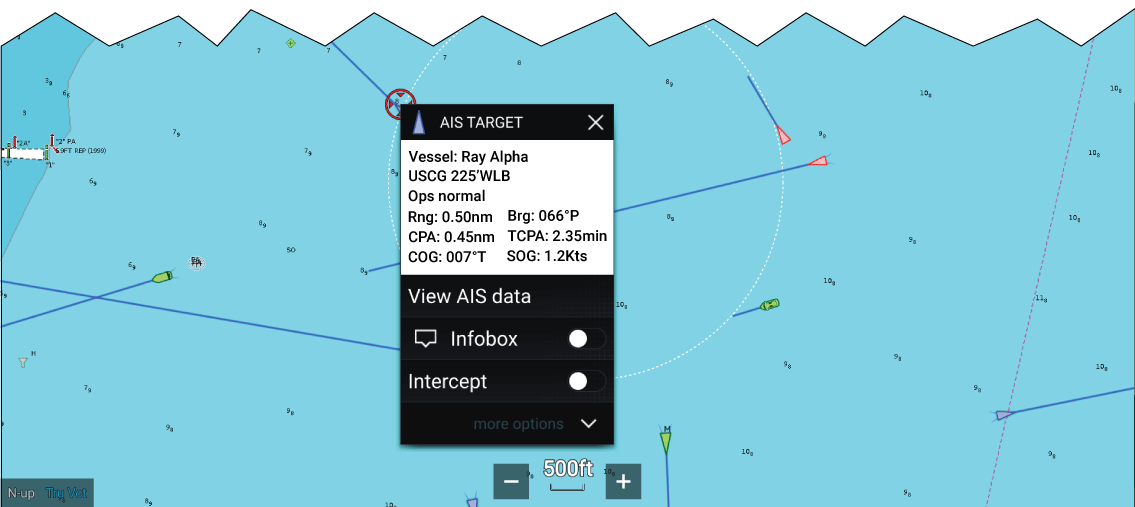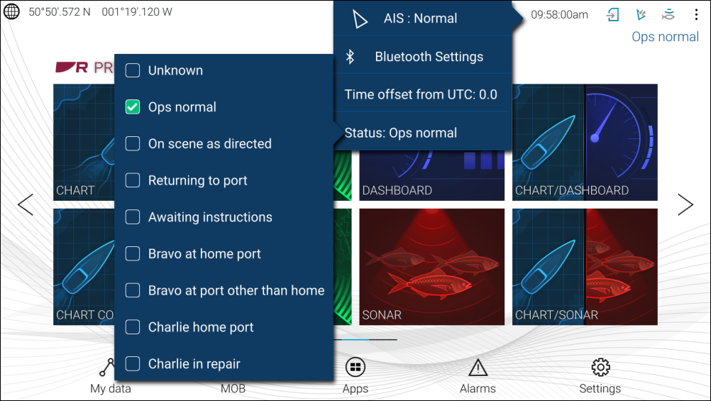 The SITREP status of other vessels is displayed in the Blue Force Target’s context menu in the Chart app and Radar app.