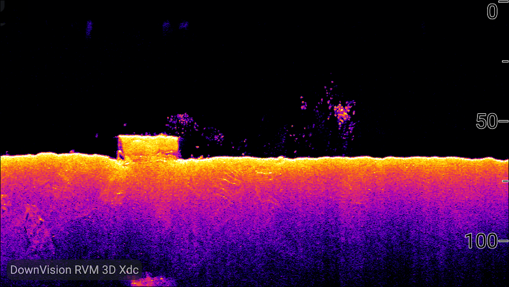 DownVision® is effective at lower vessel speeds. In deeper waters, the CHIRP bandwidth is automatically optimized to improve bottom lock and the detection of moving objects (e.g. fish) in the wider water column.