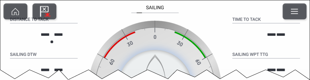 If the Sail performance setting has not been configured, the sailing dials will display fixed port and starboard close-hauled wind angle indicators, instead of the dynamic port, starboard, and downwind angle targets.
