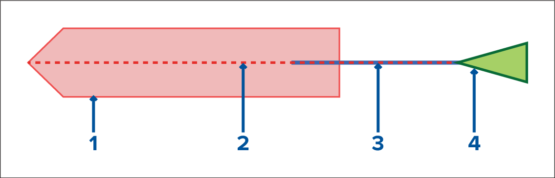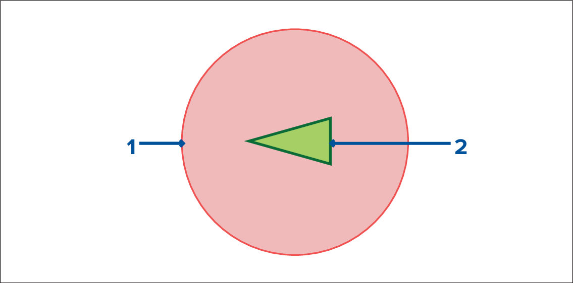 Collision avoidancePredicted Area of Danger zoneIf your paths are predicted to cross, an Interception line is displayed between your vessel and the target. Additionally, Interception zones are displayed to indicate where there is an increased risk of collision. The Interception line and the Interception zones are based on your current course and speed and the target’s current course and speed, and they can help you determine whether you should change course and / or speed to avoid a potential collision.