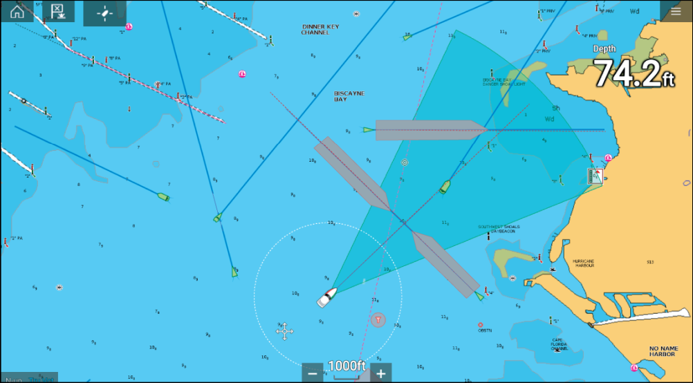 The Predicted areas of danger feature tracks Radar targets and AIS targets in relation to your own vessel’s Course Over Ground (COG) and Speed Over Ground (SOG).