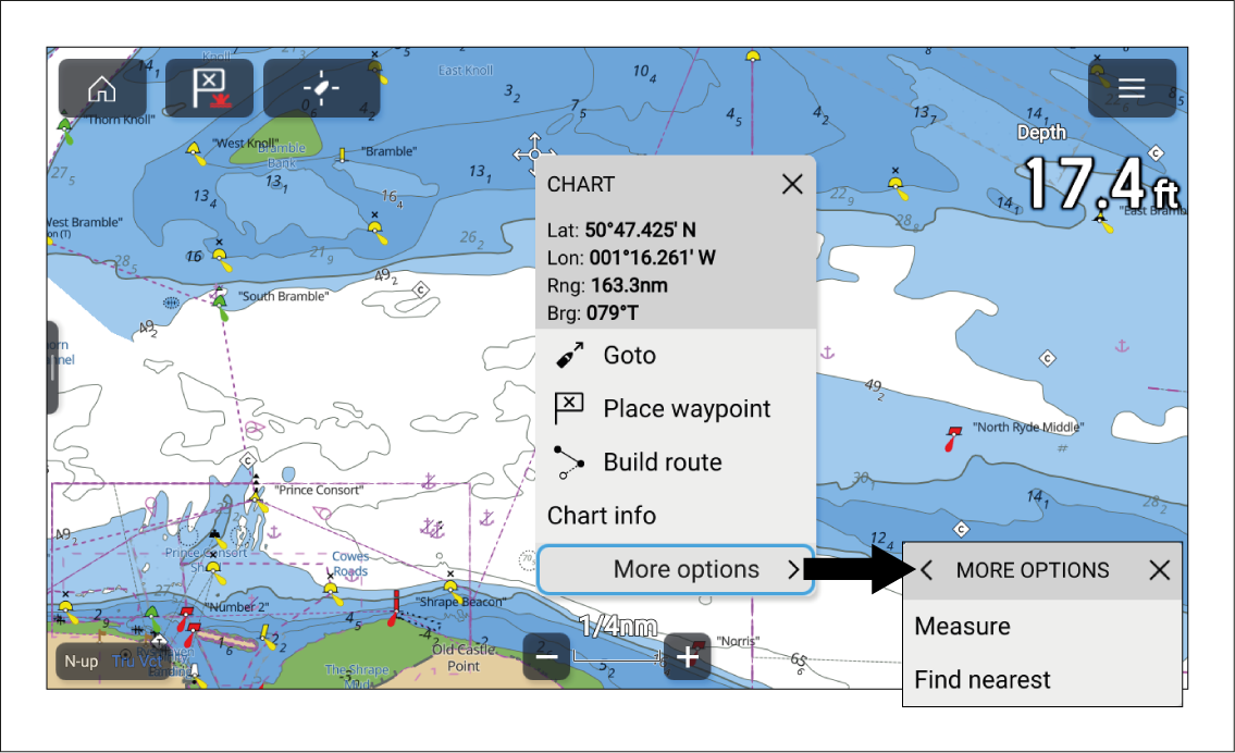 Press on a location or object to open the Info box and select the “3 dots” menu icon.
