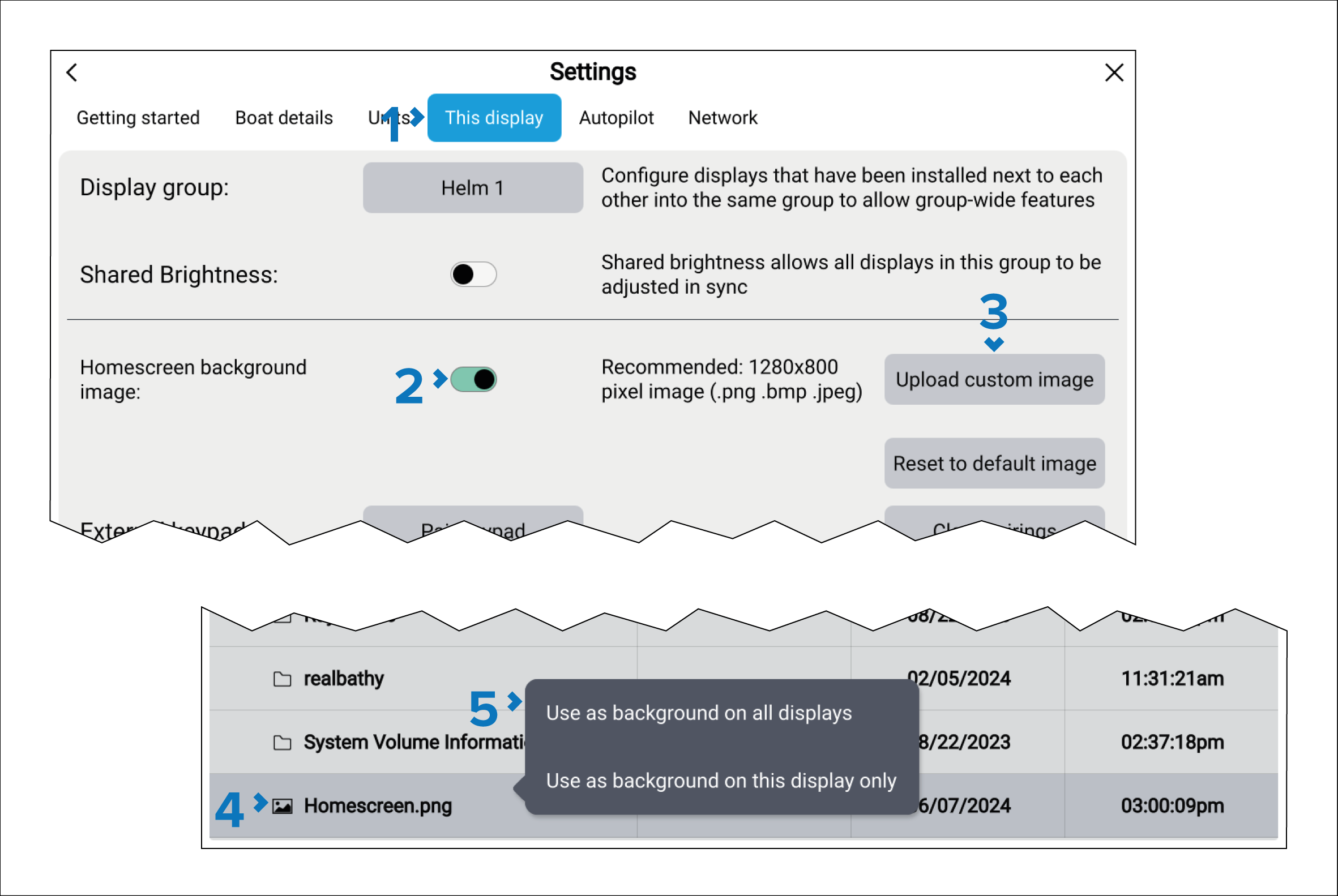 The display’s Homescreen background can be configured to use a custom image.