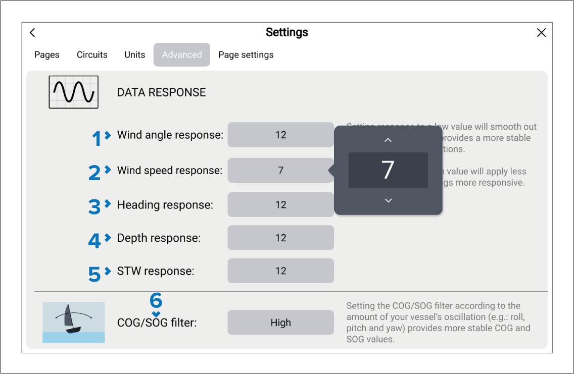 Dashboard app COG/SOG filterCOG/SOG filter (applies to COG and SOG data received from a GNSS (GPS) receiver).