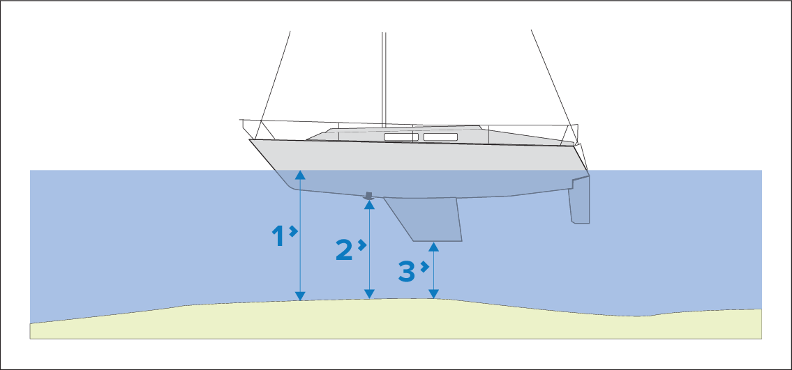 Depth is measured from the transducer face to the bottom (e.g.: seabed). An offset value can be applied to the depth data so that the displayed depth reading represents the depth reading taken from either the keel (negative offset) or the waterline (positive offset).