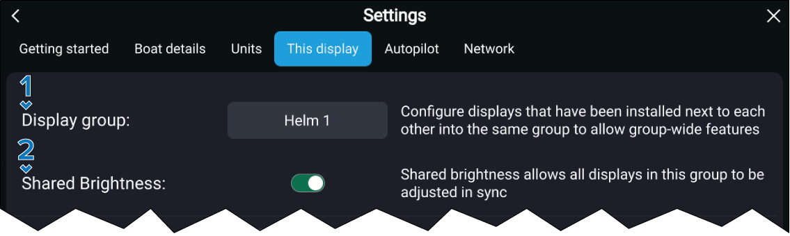 Display groupDisplay group Assign the display to a group. Used for shared brightness. |