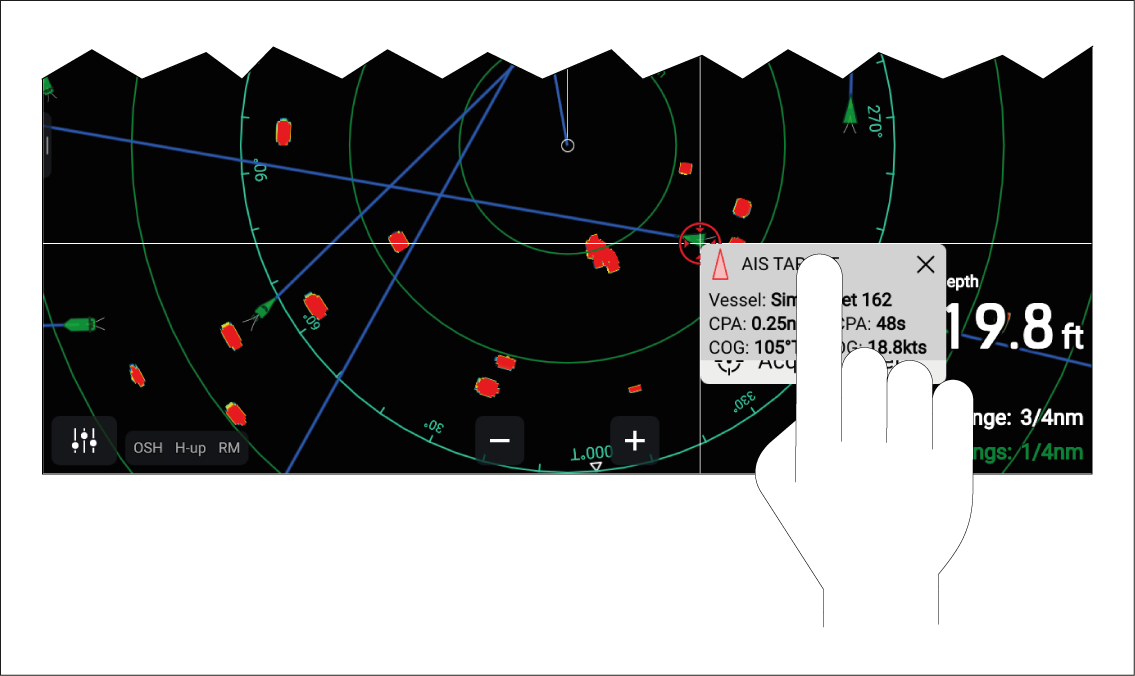 - In the Radar app, tap the screen to display the context menu.