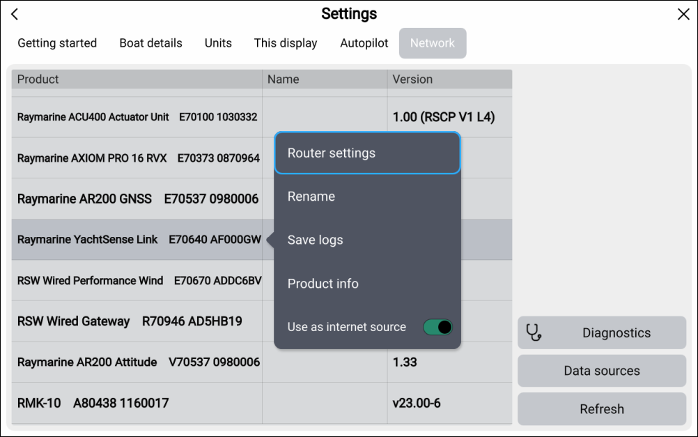 - Select the YachtSense Link router from the list of devices.