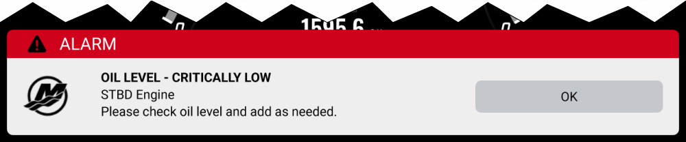 Engine alarms, warnings and notifications will be shown on the display as they are triggered.