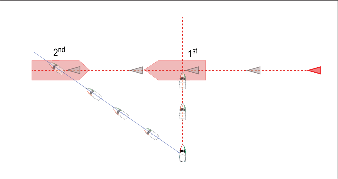 - 1st — The first Interception zone (displayed closest to the target vessel) represents a bow-to-bow collision.