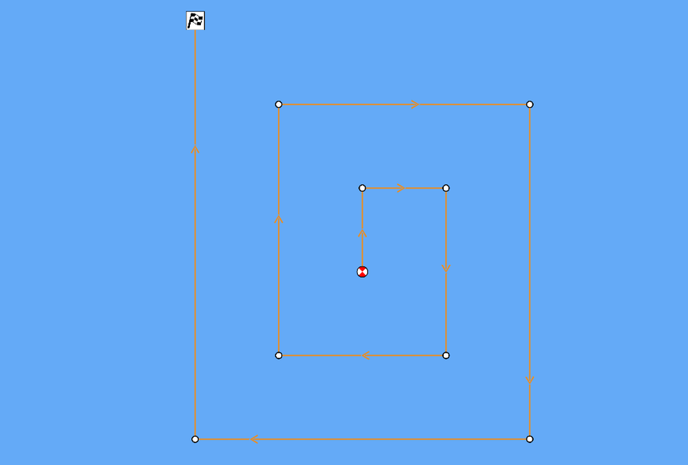 The Expanding Square search pattern is an outwards spiralling square pattern, and is particularly suited to very detailed and methodical searches.
