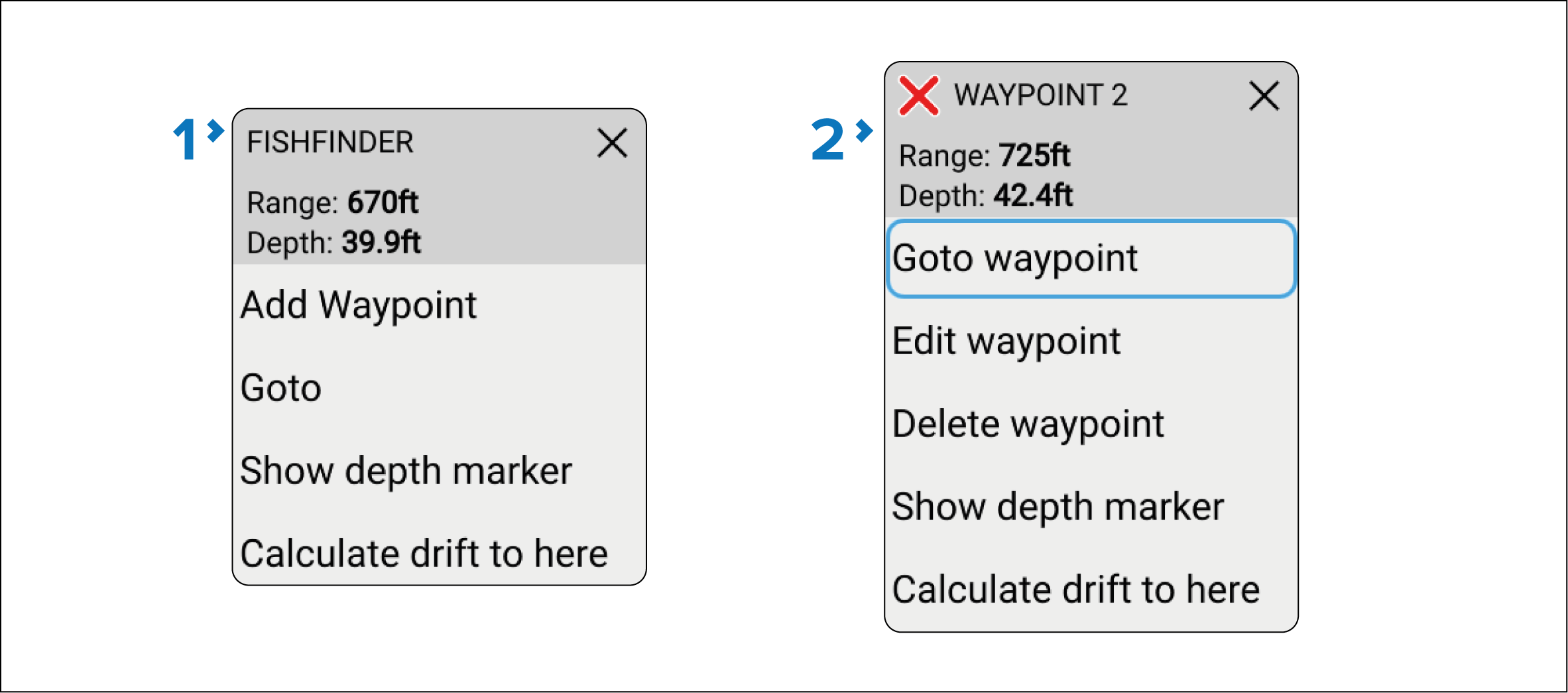 Fishfinder context menus