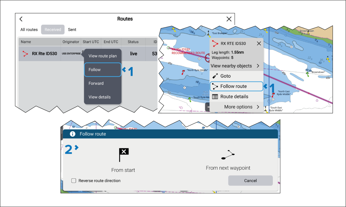 - Select Follow route from the Route context menu, or select Follow from the Route’s pop-over menu in the Received routes list.