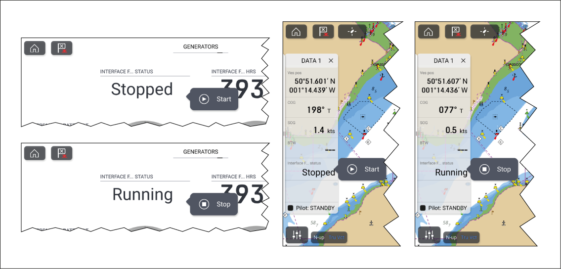Generators that include a compatible remote controller can be started or stopped from the display.