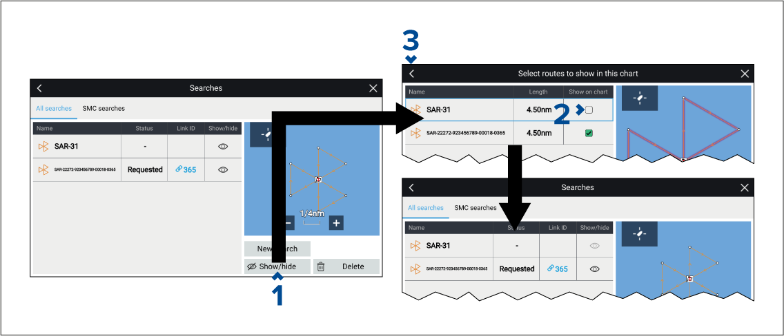 When a SAR pattern is broadcast it is duplicated and duplicate is pattern that is broadcast. To avoid any confusion you can hide the original SAR pattern.