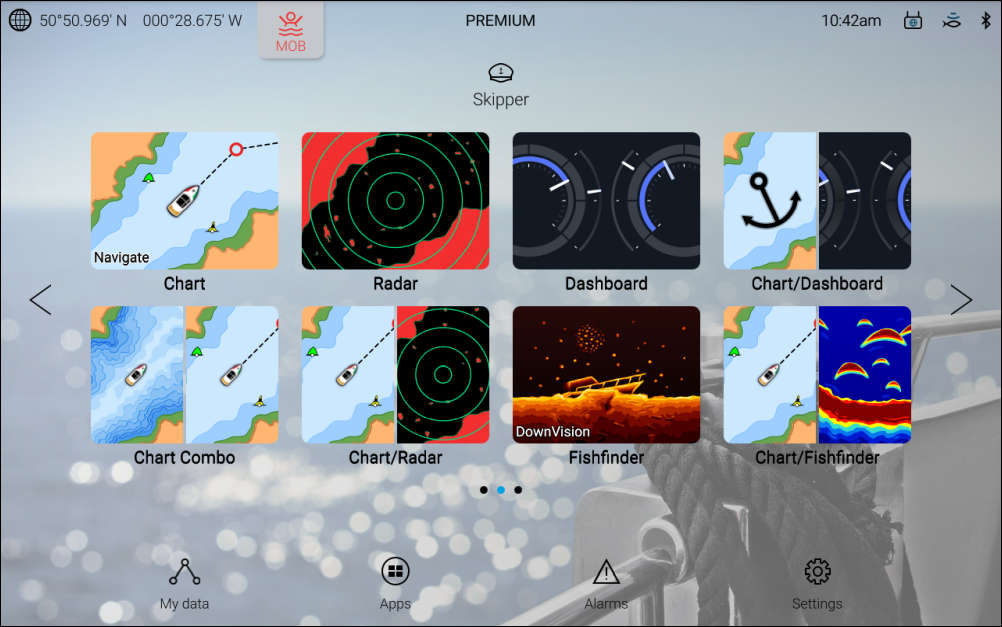 Chart app and Fishfinder app icons will change dynamically to indicate which Chart mode or Fishfinder channel is in use.