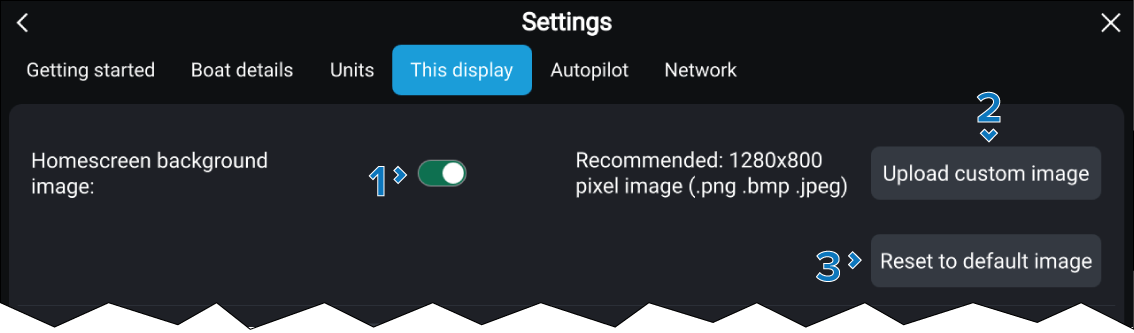 Homescreen backgroundHomescreen background image Enable and disable background images on the Homescreen. |