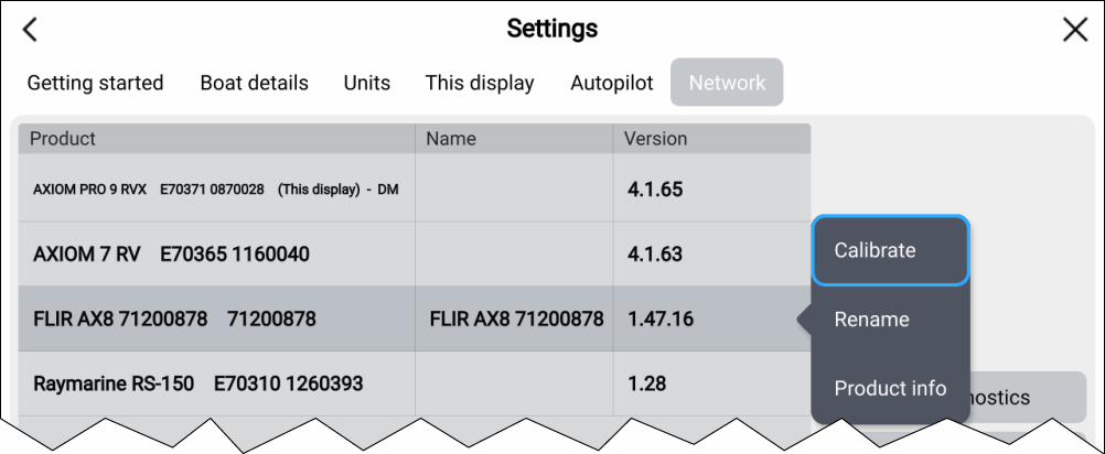 Select the device from the list to display the pop-over menu, and then select Calibrate.