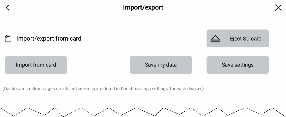 ExportUser dataSettingsImportUser dataSettingsBack upUser dataSettingsUser dataRestoreBack upThe Import/export page can be accessed from the My data page: .