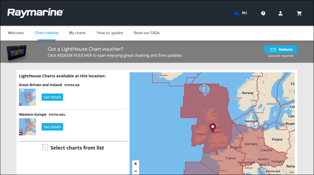 The chart store can be accessed using the following link: https://chartstore.raymarine.com/lighthouse-charts