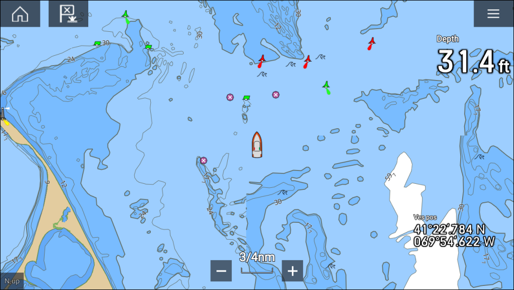 When using LightHouse™ charts or Legacy LightHouse™ vector charts objects deemed as dangerous are highlighted using a purple octagon symbol with an ‘x’ in the center.
