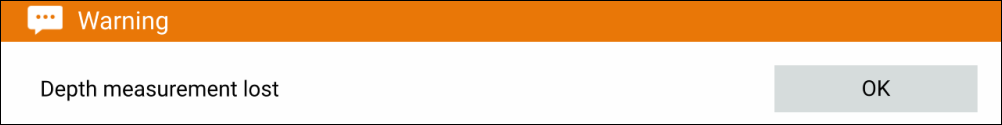 AlarmLost depth alarmDepth measurement lostIf depth data becomes unavailable (i.e.: lost) then the lost depth alarm is triggered. If depth data is intermittent then the alarm will only be triggered once every 60 seconds. The alarm will be automatically dismissed when depth data becomes available again.