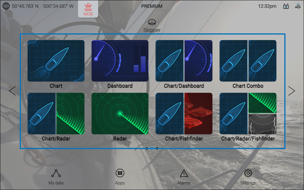 AppsMFDLightHouse MFD apps are an integral part of the operating system and are accessed using app page icons available on the Homescreen. App page icons can contain one fullscreen app, or multiple apps in a splitscreen arrangement.